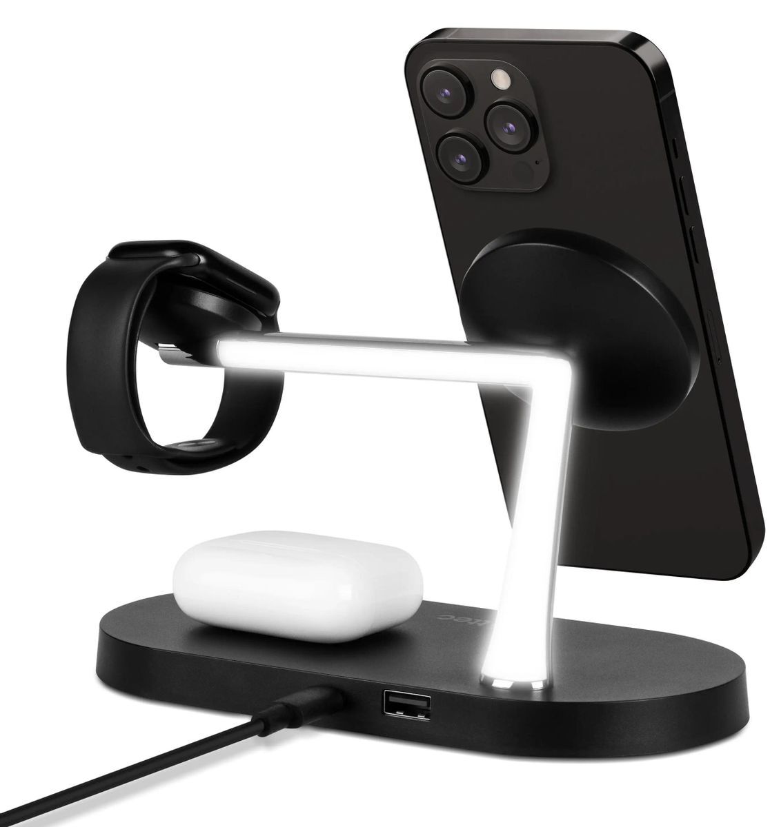 • Мощность: iPhone — 7,5 Вт, AirPods — 2 Вт, Apple Watch — 3 Вт, USB-A — 10 Вт