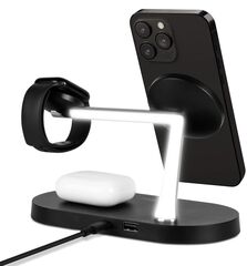 Беспровдная зарядка TTEC AirCharger Quattro M MagSafe Competitible 4in1 iPhone + Apple Watch + AirPods Wireless Fast charger with LED light, черный