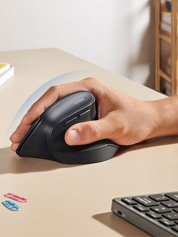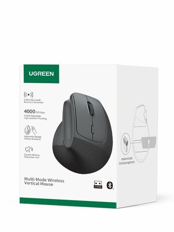 Ugreen M571P (65042) Black Wireless — беспроводная мышь удобной формы, спроектированная для обеспечения максимального комфорта при взаимодействии с компьютером. Производительность : мышка компьютерная Ugreen предоставляет быстрое реагирование и стабильное отслеживание действий благодаря высокому показателю DPI 4000. Технология SlientTouch : снижает шум щелчков, создавая тихую атмосферу для вас и окружающих. Вертикальное положение : благодаря своей форме, мышь беспроводная компьютерная Ugreen способствует удобному хвату сбоку с естественным положением руки, предотвращая напряжение кисти. Питание : беспроводная мышка Ugreen работает от батарейки типа АА. Удобное хранение : мышь беспроводная компьютерная Ugreen оснащена встроенным USB-приёмником, находящимся в батарейном отсеке, что предотвращает его потерю. Подключение : мышка беспроводная компьютерная Угрин подключается к устройству с помощью 2.4G/Bluetooth. Совместимость : мышка компьютерная беспроводная Ugreen подходит для Windows, macOS, ChromeOS, Android и Linux. Продуманная конструкция : мышка беспроводная Ugreen обладает тефлоновыми опорными ножками и противоскользящим покрытием, обеспечивающим комфортный хват устройства для продуктивной длительной работы. Мышь беспроводная Ugreen M571P (65042) Black Wireless — отличный выбор для тех, кто ценит высокое качество, эффективность и комфорт.