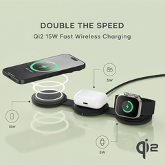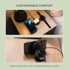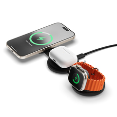 Беспроводное зарядное устройство Satechi OntheGo 3-в-1 (ST-QTG31K) черный - выведите зарядку на новый уровень с помощью стильного и универсального беспроводного зарядного устройства Satechi OntheGo «3 в 1» чёрного цвета. Это зарядное устройство премиум-класса сочетает в себе передовую технологию Qi2 и элегантный дизайн, обеспечивая быструю зарядку iPhone, Apple Watch и AirPods в одном компактном устройстве, удобном для путешествий. Новейшая технология Qi2 для мощной зарядки до 15 Вт Новейшая технология Qi2 для мощной зарядки Удобное решение для зарядки «три в одном» Складная портативная конструкция идеально подходит для путешествий Несколько положений для зарядки для универсального использования Высококачественные, экологически чистые материалы с элегантной отделкой Desert Rose В комплект входит: Технические характеристики продукта: |