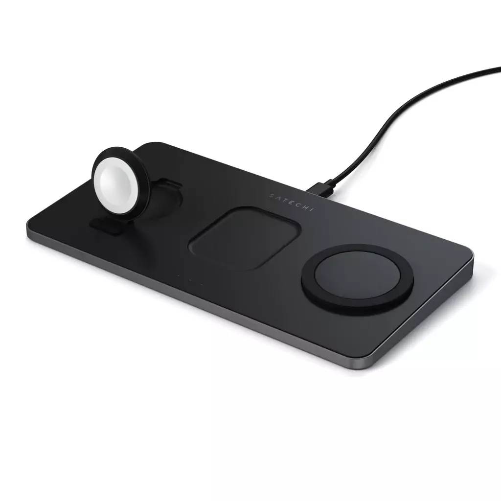 Беспроводное зарядное устройство Satechi Trio с магнитной панелью упрощает беспроводную зарядку с удобным местом для всех ваших устройств, поэтому вы никогда не будете без заряда. Благодаря более быстрой технологии зарядки и интеллектуальным функциям безопасности зарядная панель быстро питает смартфон с поддержкой Qi, Apple Watch и AirPods Pro одновременно.