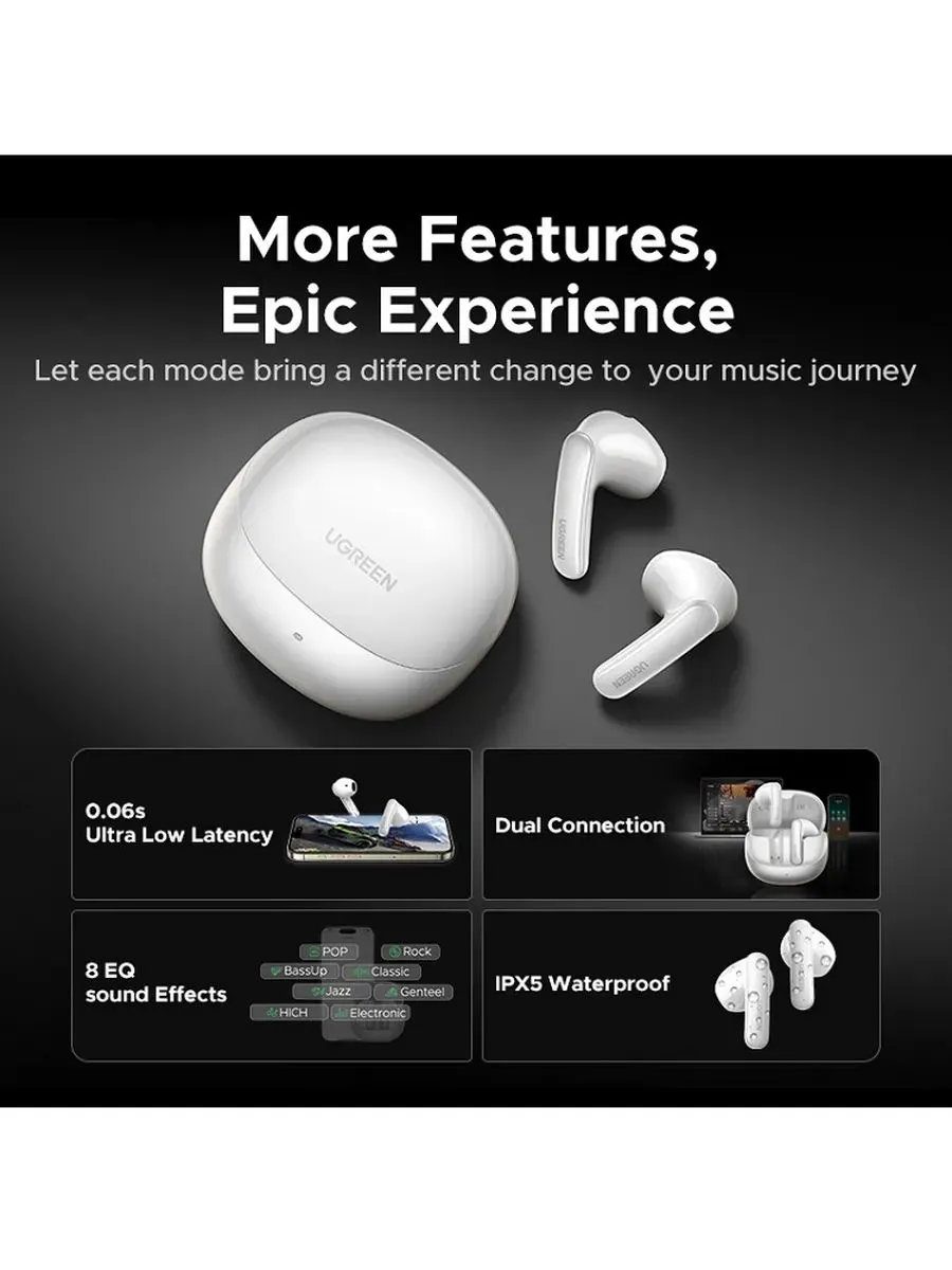 | Беспроводные наушники UGREEN WS215 (65385) LightBuds Pro Bluetooth 6.0 Earphone 6 Mics представляют собой современное устройство, сочетающее в себе передовые технологии и стильный дизайн. Наушники оснащены 6 микрофонами с алгоритмом искусственного интеллекта, что обеспечивает высокое качество звука и комфортное общение. Благодаря поддержке кодеков LDAC, AAC и SBC, вы сможете наслаждаться музыкой и разговорами без потери качества. Наушники UGREEN WS215 (65385) LightBuds Pro поддерживают технологию Bluetooth 6.0, что обеспечивает стабильное и быстрое подключение к различным устройствам. Наушники оснащены функцией шумоподавления с алгоритмом искусственного интеллекта, которая позволяет наслаждаться музыкой и разговорами в условиях повышенного шума. Наушники имеют стильный белый цвет и вкладышную конструкцию, которая обеспечивает комфортное ношение в течение длительного времени. Наушники UGREEN WS215 (65385) LightBuds Pro имеют защиту от влаги, что позволяет использовать их в различных условиях. В комплекте с наушниками идет удобный кейс для зарядки, который обеспечивает быстрое и безопасное пополнение заряда аккумулятора. Выбирая беспроводные наушники UGREEN WS215 (65385) LightBuds Pro, вы получаете современное и функциональное устройство, которое станет незаменимым помощником в повседневной жизни и во время активного отдыха. |