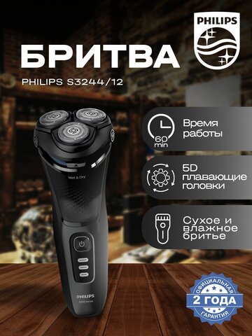 Электробритва Philips S3244 оборудована тремя вращающимися бритвенными головками, которые обеспечивают более гладкое бритье без раздражения кожи. Бритва для мужчин оснащена триммером, что позволяет удобно подстригать усы, бакенбарды и волосы на лице. Система бритья PowerCut blade обеспечивает эффективное удаление волос на лице и шее. Благодаря возможности сухого и влажного бритья, бритва может использоваться как с пеной или гелем для бритья, так и без них. В комплекте имеется защитный колпачок и чехол для удобного хранения и переноски. Время автономной работы составляет 60 минут, что обеспечивает комфортное бритье. Бритву можно мыть под водой и это облегчает процесс очистки. Philips S3244 имеет прорезиненную ручку для удобного и надежного удержания в руке во время бритья. Показатель уровня заряда аккумулятора уведомляет пользователя о необходимости подзарядки бритвы. Современный и функциональный дизайн бритвы Philips S3244 сочетается с ее высокой производительностью и эффективностью. Бритва оснащена продвинутыми технологиями и предлагает удобство использования, надежность и длительный срок службы.