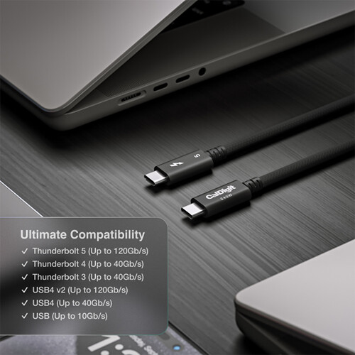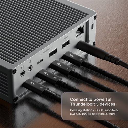- Исключительная производительность с двусторонней передачей данных со скоростью до 80 Гбит/с или 120 Гбит/с с увеличением пропускной способности для устройств Thunderbolt 5 или USB4 v2.