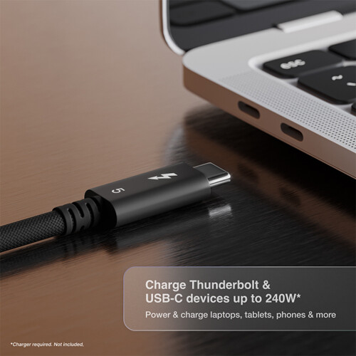 • Идеально подходит для компьютеров Apple Silicon Mac с интерфейсами Thunderbolt 5 или Thunderbolt 4, ПК с Windows Thunderbolt 5 или Thunderbolt 4, iPhone или iPad с интерфейсом USB-C, док-станций Thunderbolt или USB-C, высокоскоростных устройств хранения данных Thunderbolt или USB-C, адаптеров Thunderbolt-10GbE или внешних видеокарт Thunderbolt.