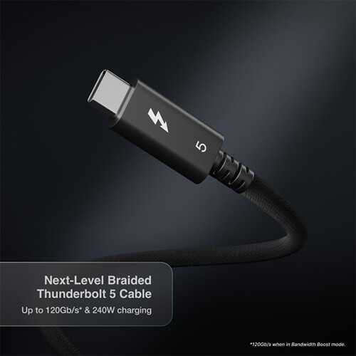 • Исключительная производительность с двусторонней передачей данных со скоростью до 80 Гбит/с или 120 Гбит/с с увеличением пропускной способности для устройств Thunderbolt 5 или USB4 v2.