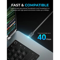Подключите свои устройства с помощью надежного и высокоскоростного активного кабеля Sabrent Thunderbolt 4 с чипом E-Marker. Полностью соответствующий спецификации USB Power Delivery 3.0 и подкрепленный укоренившимся чипом E-Marker, этот кабель обеспечивает мощность до 100 Вт, а также повышенную скорость передачи данных до 40 Гбит/с на увеличенном диапазоне 6,5 футов. Благодаря поддержке видео DisplayPort 1.4 вы можете подключить кабель к дисплеям с разрешением до 8K с частотой обновления 60 Гц для четкого и плавного изображения. Этот кабель также совместим с устройствами Thunderbolt 3 и USB4 с потенциально ограниченными возможностями.