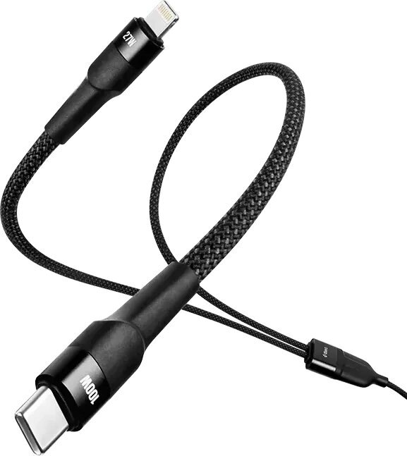 Прежде всего, его универсальность вызывает искреннее восхищение. В комплекте вы найдёте два сменных наконечника: один с разъёмом USB Type-C, а другой — Lightning. Это значит, что одним кабелем вы сможете заряжать или синхронизировать данные практически с любыми вашими устройствами. Современный смартфон на Android, планшет, новые модели наушников или портативная колонка с USB Type-C, а также ваш iPhone или другие аксессуары Apple с разъёмом Lightning — всё это теперь подвластно одному кабелю. Больше не нужно путаться в проводах или искать нужный переходник перед выходом из дома; этот кабель заменяет сразу два, экономя место в рюкзаке и избавляя от лишних хлопот.