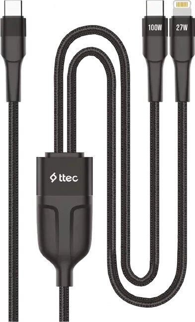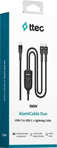Кабель TTEC AlumiCable Duo USB-C To USB-C & Lightning Fast Charge 100W Cable, 150см, черный