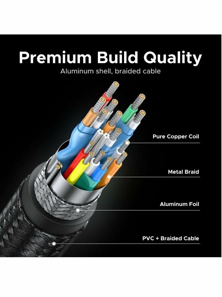 Конструкция кабеля продумана до мелочей. Его общая длина составляет двадцать сантиметров, что делает подключение аккуратным и удобным в условиях ограниченного пространства за рабочим столом или домашней медиасистемой. Короткая длина минимизирует путаницу среди других проводов и способствует оптимальному качеству сигнала. Прочный чёрный кабель дополнительно защищён качественной тканевой оплёткой, которая эффективно противостоит механическим повреждениям, перегибам и истиранию, значительно продлевая срок службы изделия.