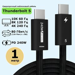 Кабель UGREEN L703 (45996) Thunderbolt 5 - 5A - 1м черного цветаКабель нового поколения с поддержкой Thunderbolt 5 обеспечивает впечатляющую скорость передачи данных до 80 Гбит/с в обоих направлениях, а также одностороннюю пропускную способность до 120 Гбит/с для видео. Он обратно совместим с Thunderbolt 4/3, USB4 и другими популярными протоколами, что делает его универсальным решением как для современных, так и для более ранних устройств. Благодаря поддержке протокола DisplayPort 2.1 кабель способен выводить изображение с разрешением от 4K при 144 Гц до 16K при 60 Гц, позволяя подключать до трёх 4K-мониторов одновременно. Это обеспечивает высокую чёткость и насыщенность изображения как при работе с графикой, так и при просмотре видео. |