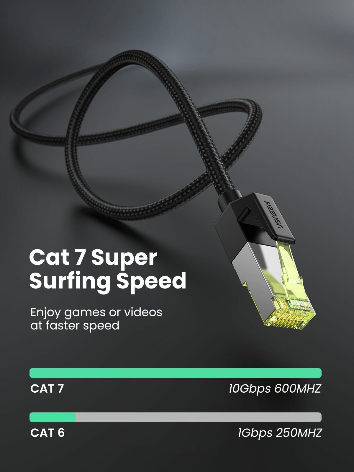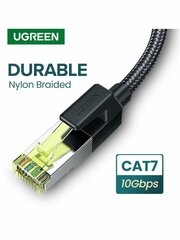 Кабель UGREEN NW150 (80420) CAT7 Shielded Round Cable with Braided Modular Plugs, 0,5м, черный