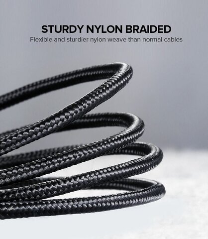 Кабель UGREEN US290 (60144) USB 2.0 A to Micro USB Cable Nickel Plating Alu Braid 0,25м - Grey/Black