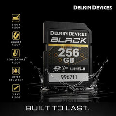 Карта памяти BLACK UHS-II SDXC 256 ГБ от Delkin Devices сочетает в себе промышленную прочность и надежность с высокой производительностью. Она имеет объём 256 ГБ и использует шину UHS-II для поддержки расширенных функций, таких как серийная съёмка и скоростная съёмка, а также запись в форматах RAW и JPEG. Эта карта также отлично подходит для видеосъёмки, включая видео 8K, 6K, 4K, Full HD и HFR, и обеспечивает максимальную скорость чтения до 290 МБ/с и максимальную скорость записи до 190 МБ/с. Благодаря классу скорости V60 минимальная скорость записи гарантированно не опустится ниже 60 МБ/с.