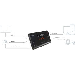 Конвертер поддерживает разрешение 4K до 30 кадров в секунду и разрешение 1080p до 60 кадров в секунду, а также большинство компьютерных графических форматов. Все сигналы разрешения SD и HD преобразуются в 8-битное цветовое пространство 4: 2: 2 через USB 3.0, тогда как все сигналы разрешения UHD преобразуются в 12-битное 4: 2: 0. Вложенный звук в сигнал HDMI извлекается и выводится как двухканальный LPCM. В комплект входит кабель USB 3.0.
