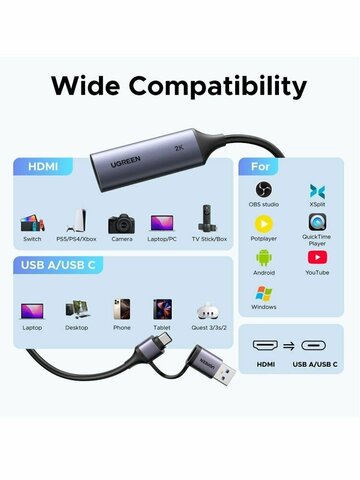 | Карта видеозахвата UGREEN CM629 (15389) HD HDMI&USB-C/USB-A 4K@30Hz Video Capture Card - это высококачественное устройство, которое позволяет захватывать видео с разрешением до 4K при 30 Гц. Устройство оснащено входным портом HDMI, что обеспечивает подключение к различным источникам видеосигнала. Это позволяет захватывать видео с разрешением до 4K при 30 Гц, что гарантирует высокое качество изображения. Карта видеозахвата поддерживает различные форматы видео и аудио, включая MJPEG/YUY2, RGB/YCbCr 4:4:4/YCbCr 4:2:2/YCbCr 4:2:0, 24 бит/30 бит/36 бит и 24 бит/48 кГц (макс.) для звука. Это обеспечивает гибкость при работе с различными видео и аудио материалами. Устройство совместимо с различными операционными системами, включая Windows 8.1/10/11, macOS, Linux и Android 5.0 или более поздние версии. Это позволяет использовать карту видеозахвата с различными устройствами и платформами. Карта видеозахвата оснащена портами USB-C и USB-A для подключения к различным устройствам. Это позволяет использовать устройство с различными компьютерами и ноутбуками, а также с мобильными устройствами. В комплекте с картой видеозахвата идет программное обеспечение, включая OBS Studio, XSplit, Potplayer и QuickTime Player. Это позволяет сразу начать работу с устройством и использовать его для различных задач. Выбирая карту видеозахвата UGREEN CM629 (15389) HD HDMI&USB-C/USB-A 4K@30Hz Video Capture Card, вы получаете высококачественное устройство для захвата видео с различными источниками, совместимое с различными операционными системами и платформами, а также с широким спектром программного обеспечения для работы с видео. |