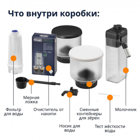 Программы приготовления: эспрессо; лунго; американо; капучино; латте макиато; эспрессо макиато; флэт уайт; латте; кортадо; горячее молоко; холодный кофе