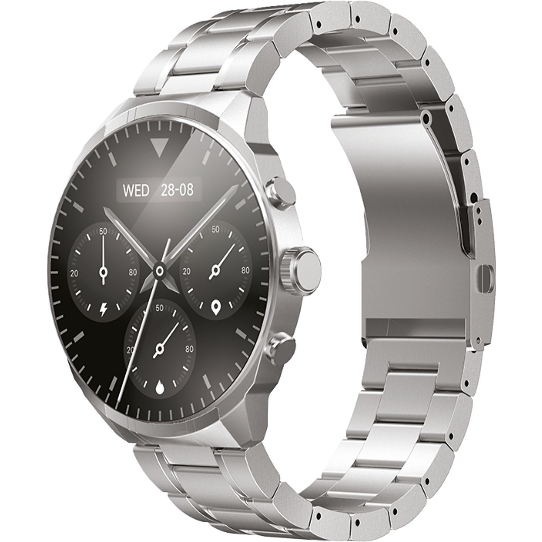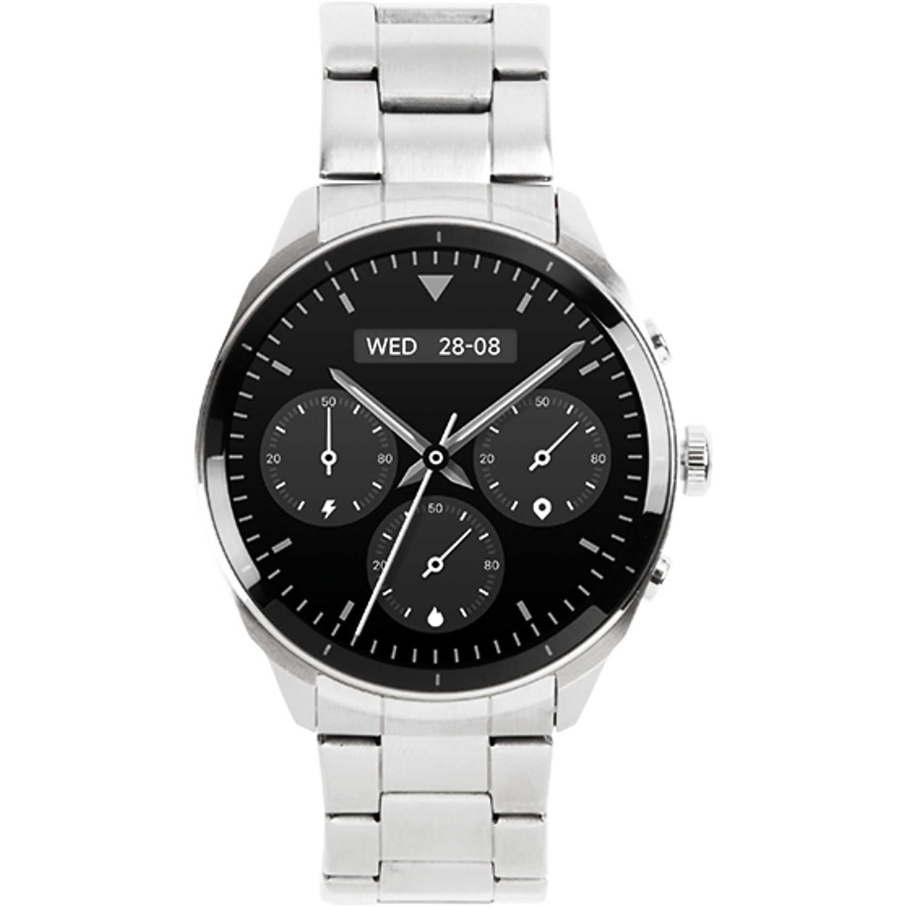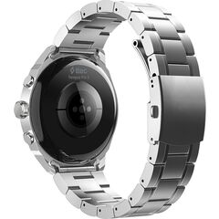 Корпус диаметром сорок пять миллиметров, выполненный из качественного металла в классическом серебристом оттенке, говорит о вашем чувстве стиля и внимании к деталям. Такой же металлический браслет длиной двести шестьдесят миллиметров обеспечивает комфортную посадку на запястье и завершает целостный образ, подчеркивая статусность устройства. Несмотря на использование долговечных материалов, часы остаются удивительно компактными: их габариты составляют 45 на 45 на 12 миллиметров, что делает их удобными для ношения в любой ситуации.