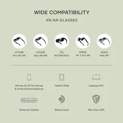 Подключите мобильное устройство, планшет или портативную консоль (например, Steam Deck, Nintendo Switch или MSI Claw) к XR Hub и очкам для портативного игрового опыта следующего поколения.
