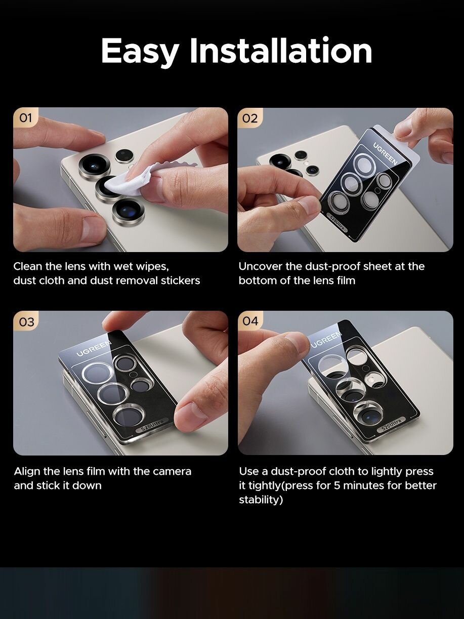 | Защита линзы на камеру UGREEN SP881 (65170) HD Camera Lens Protector для Samsung Galaxy S25 Ultra Защита линзы на камеру UGREEN SP881 (65170) HD Camera Lens Protector предназначена специально для Samsung Galaxy S25 Ultra. Она обеспечивает надежную защиту объектива камеры от царапин, ударов и отпечатков пальцев. Прозрачность и четкость HD Благодаря прозрачности, защитная пленка не влияет на качество изображения и сохраняет четкость HD. Твердость стекла 9H Твердость стекла составляет 9H, что гарантирует устойчивость к царапинам и ударам. Это означает, что пленка будет защищать объектив камеры даже при активном использовании смартфона. Выбирая защиту линзы на камеру UGREEN SP881 (65170) HD Camera Lens Protector для Samsung Galaxy S25 Ultra, вы получаете надежную защиту объектива камеры и сохраняете качество изображения на высоком уровне. |